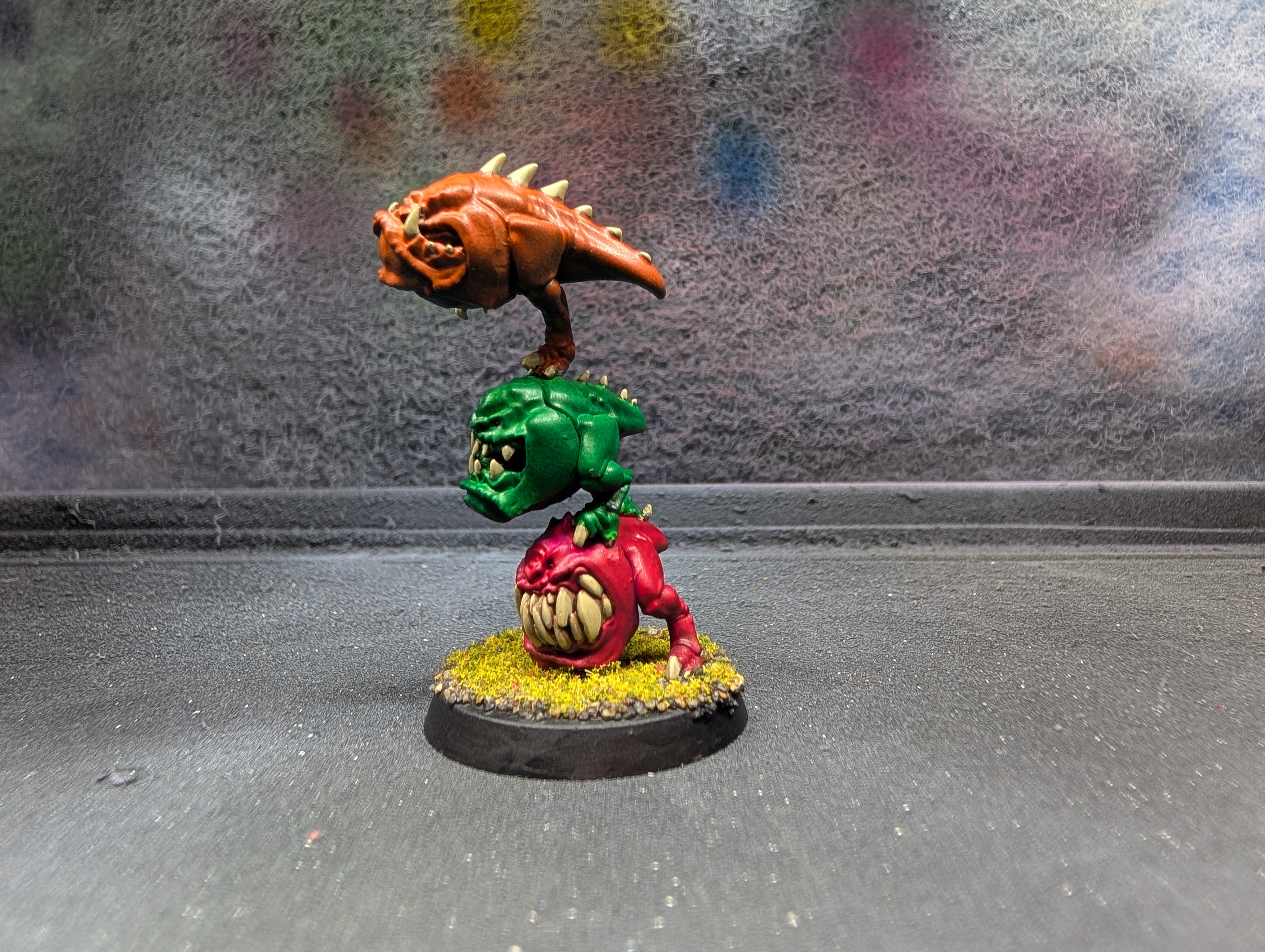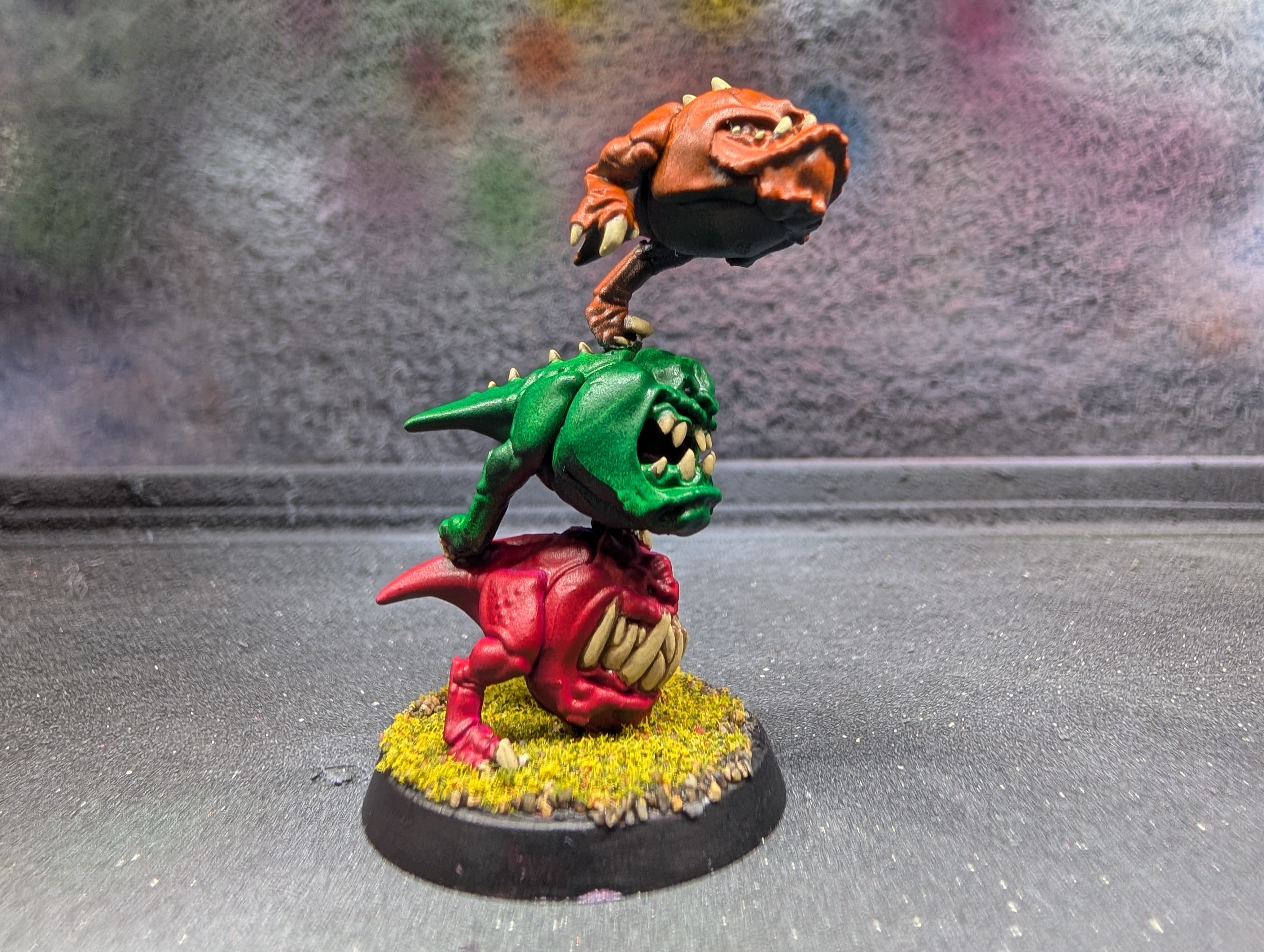 Taking what I learned from NOVA Open, I applied it to some Squigs. These will be used as Blood Bowl Trolls on a Snotling team. Note: I did none of the detail work. Just the base colors.